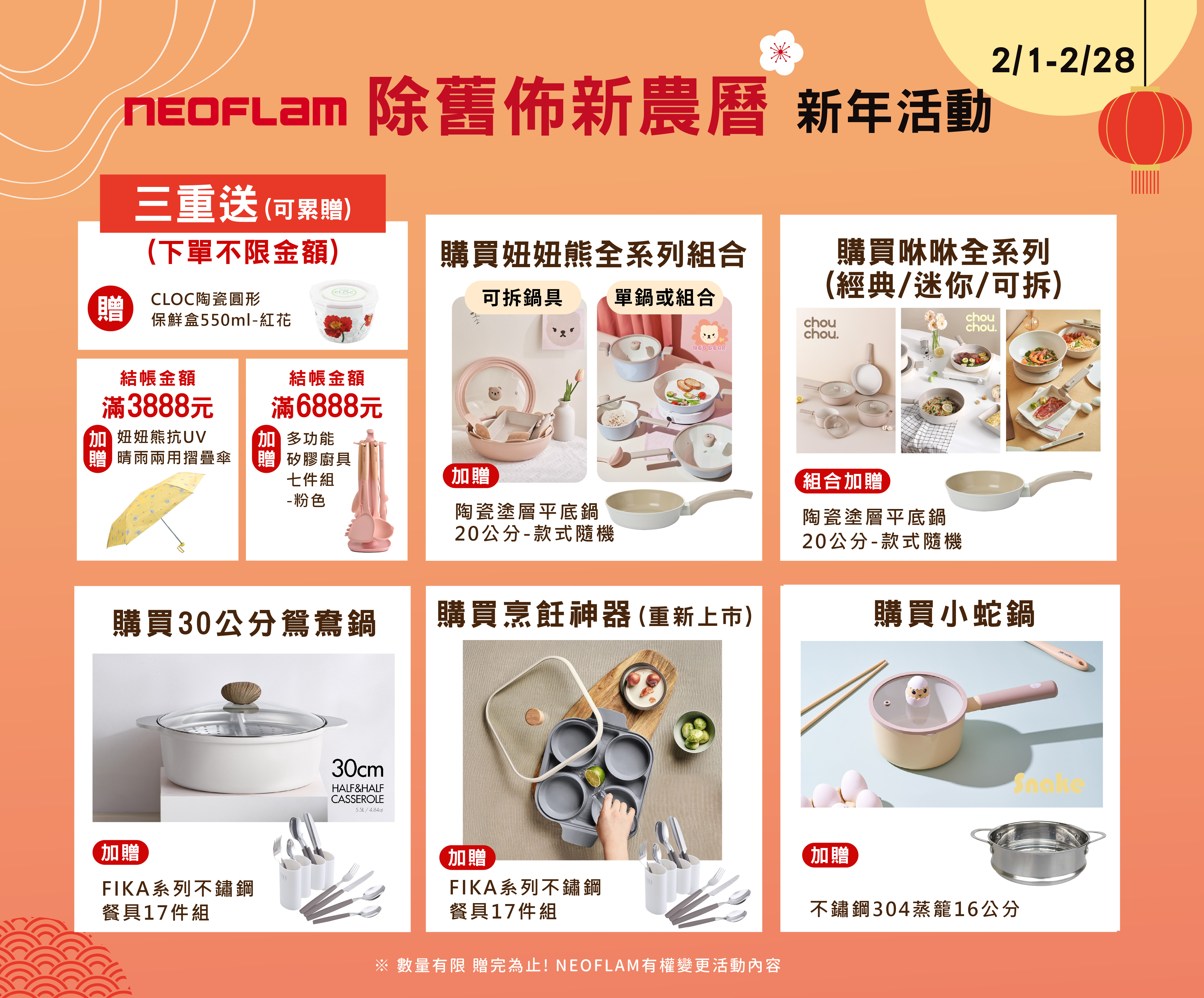結帳金額滿6888元,加贈多功能矽膠廚具七件組