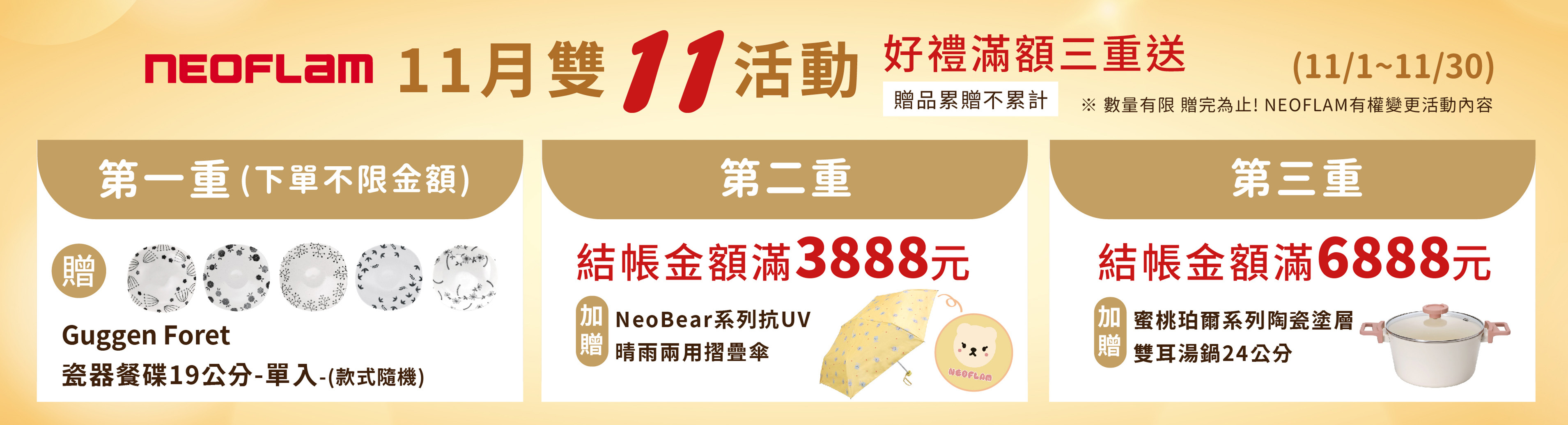 結帳金額滿3888元,加贈妞妞熊抗UV晴雨兩用摺疊傘