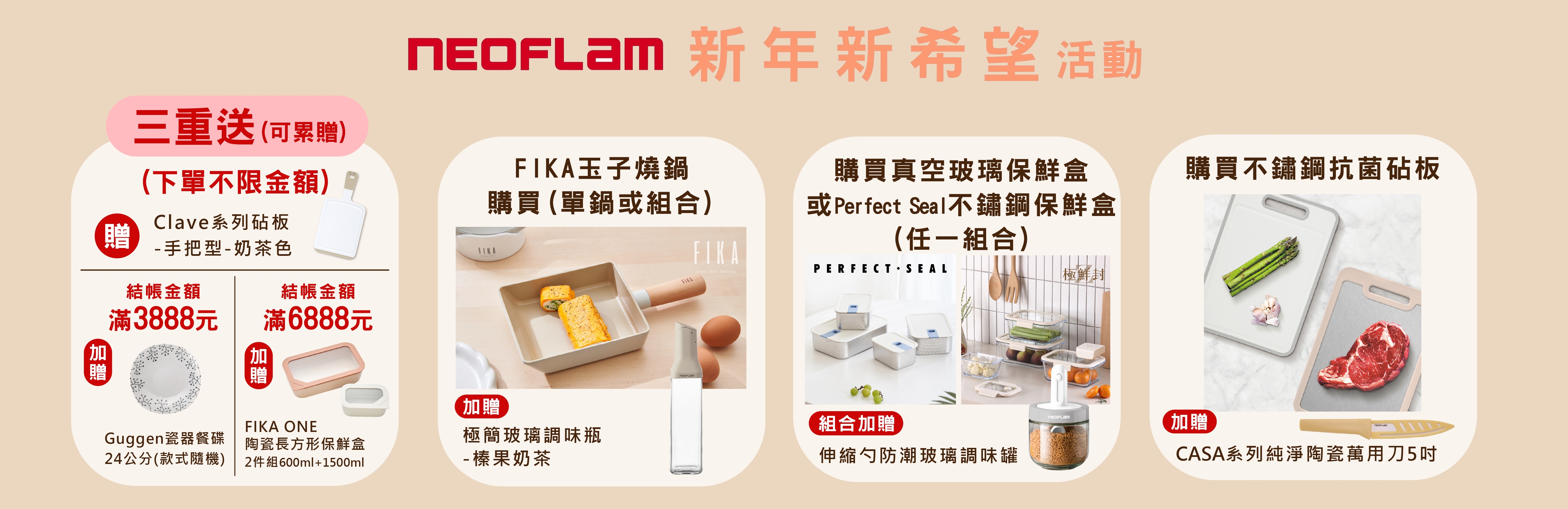 結帳金額滿6888元,加贈FIKA ONE陶瓷保鮮盒二入組