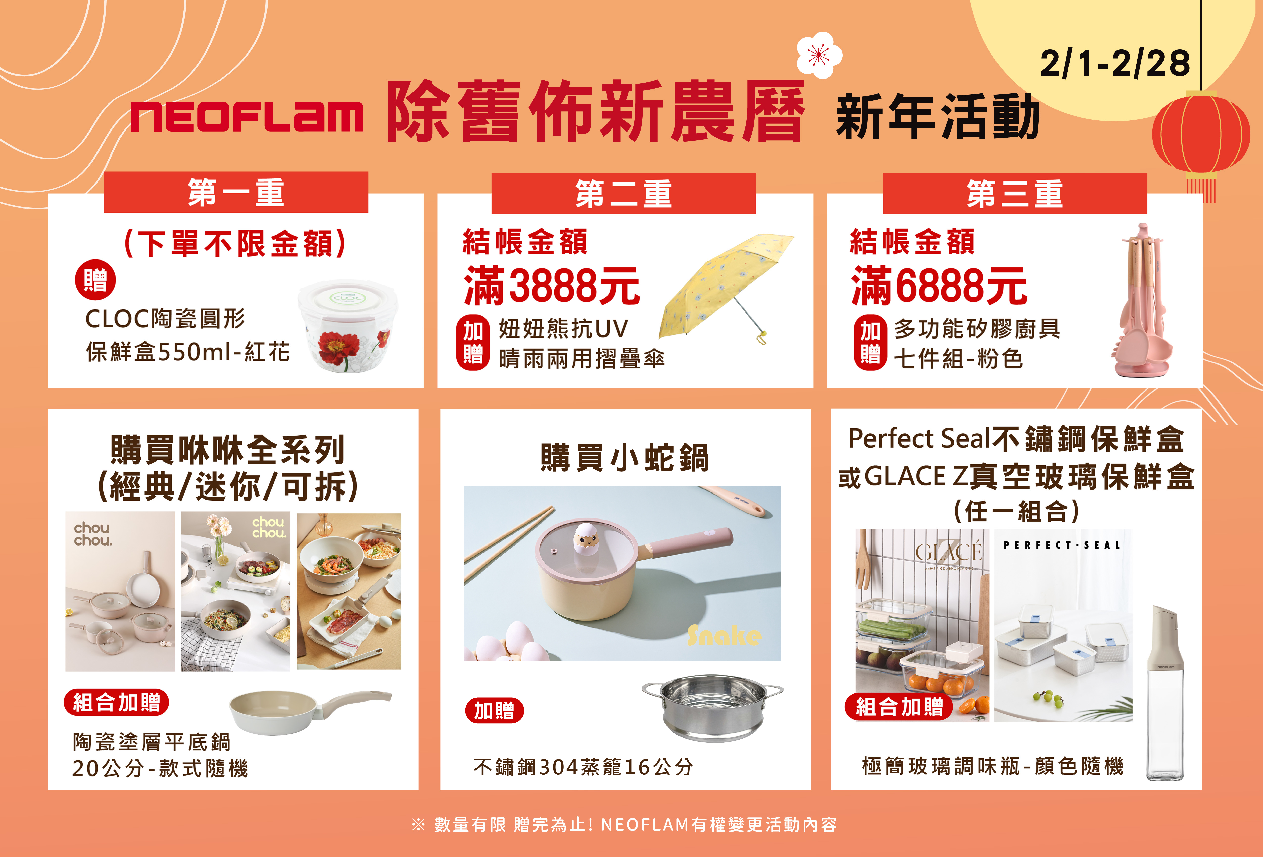 結帳金額滿6888元,加贈多功能矽膠廚具七件組