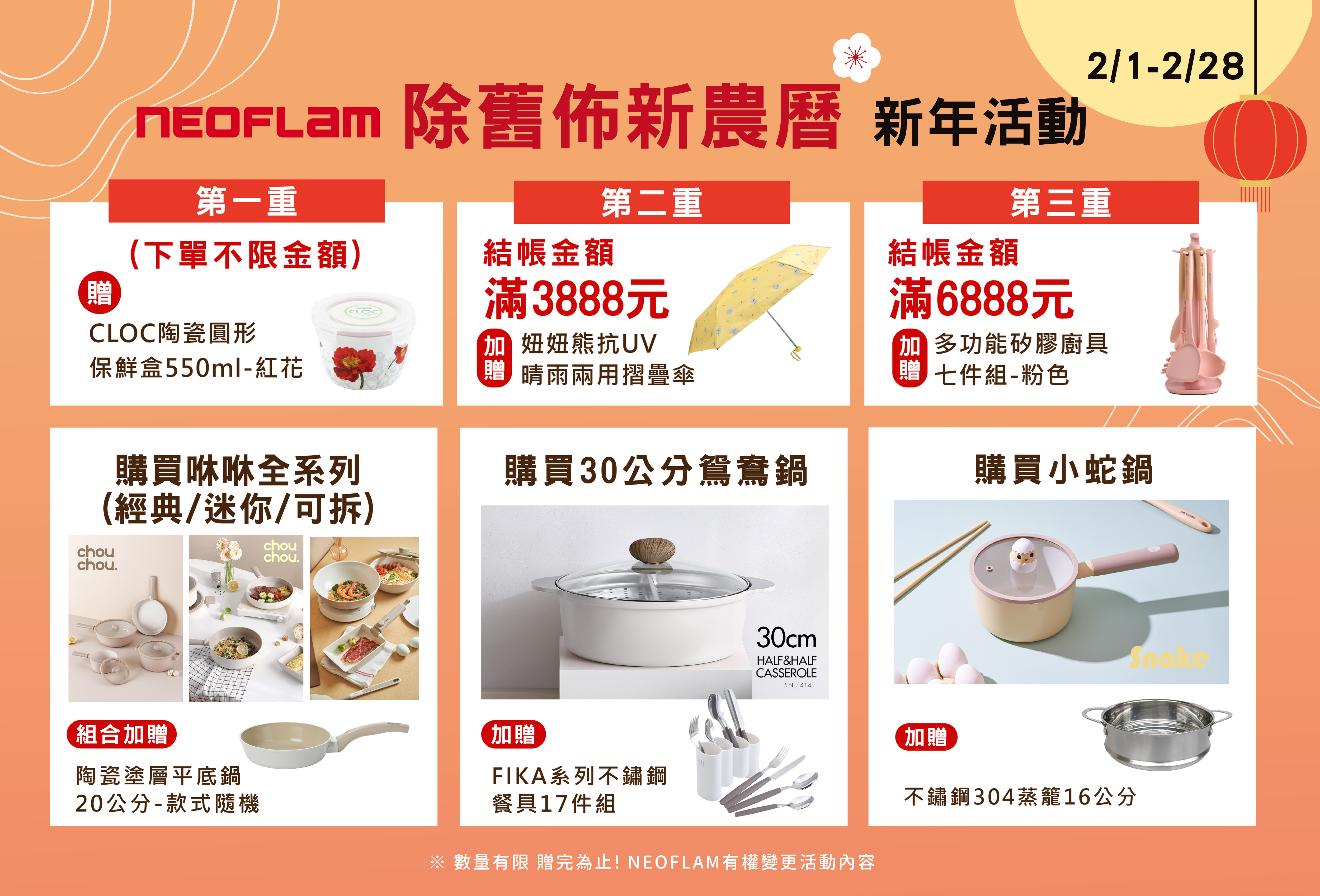 結帳金額滿6888元,加贈多功能矽膠廚具七件組
