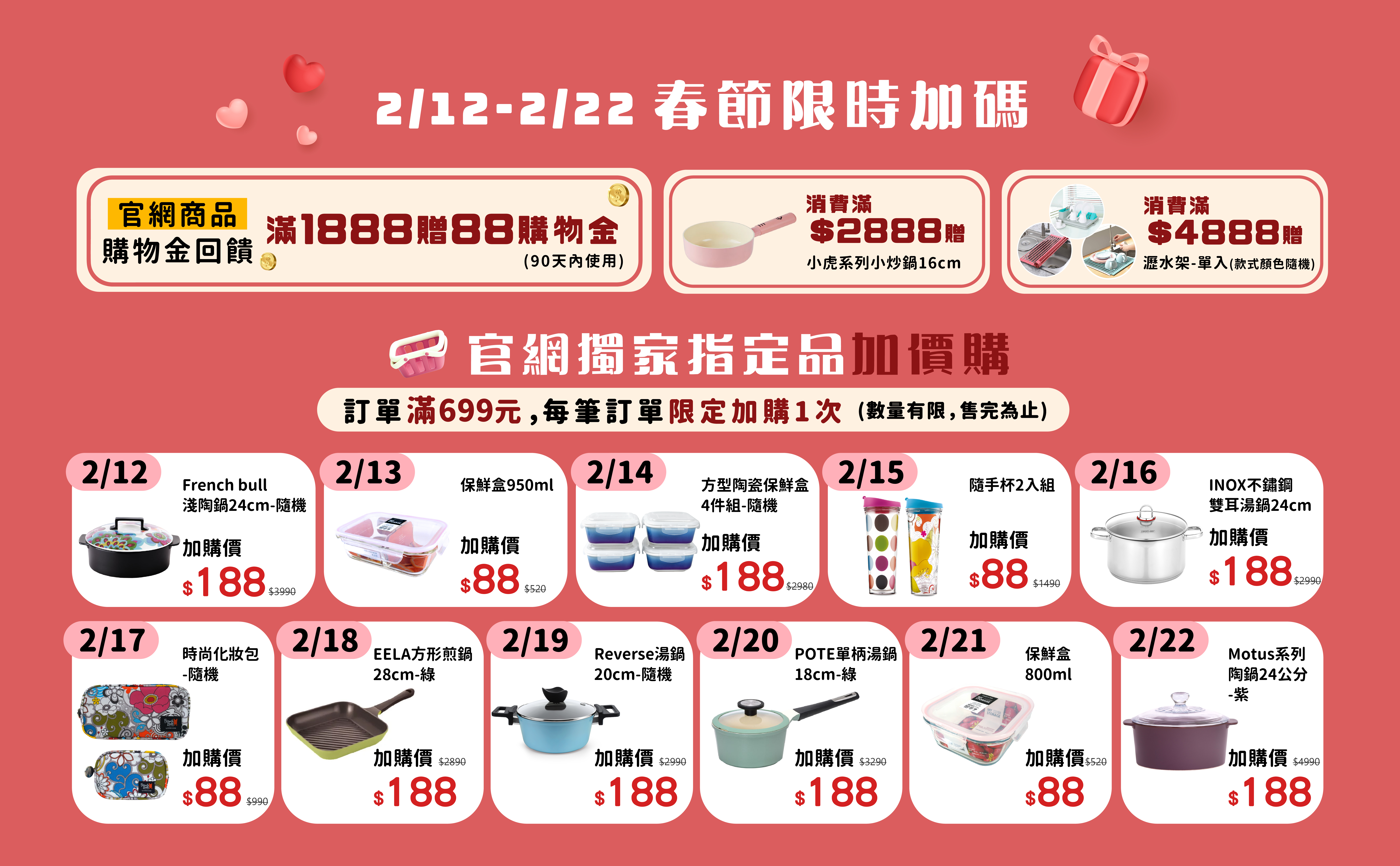 結帳金額滿6888元,加贈多功能矽膠廚具七件組