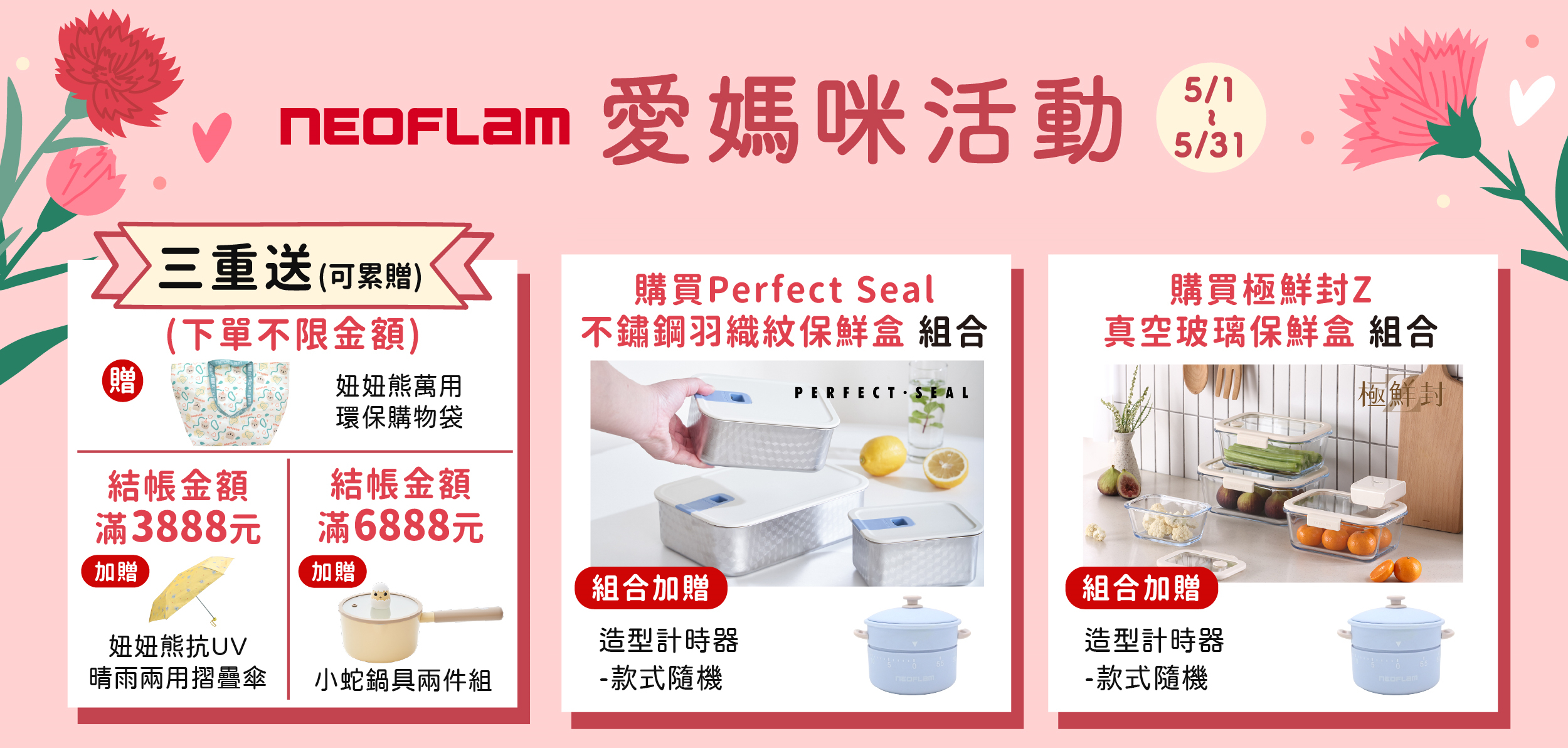 結帳金額滿3888元,加贈妞妞熊抗UV兩用摺疊傘