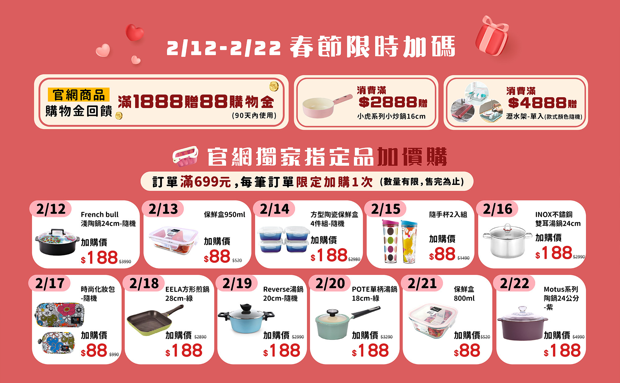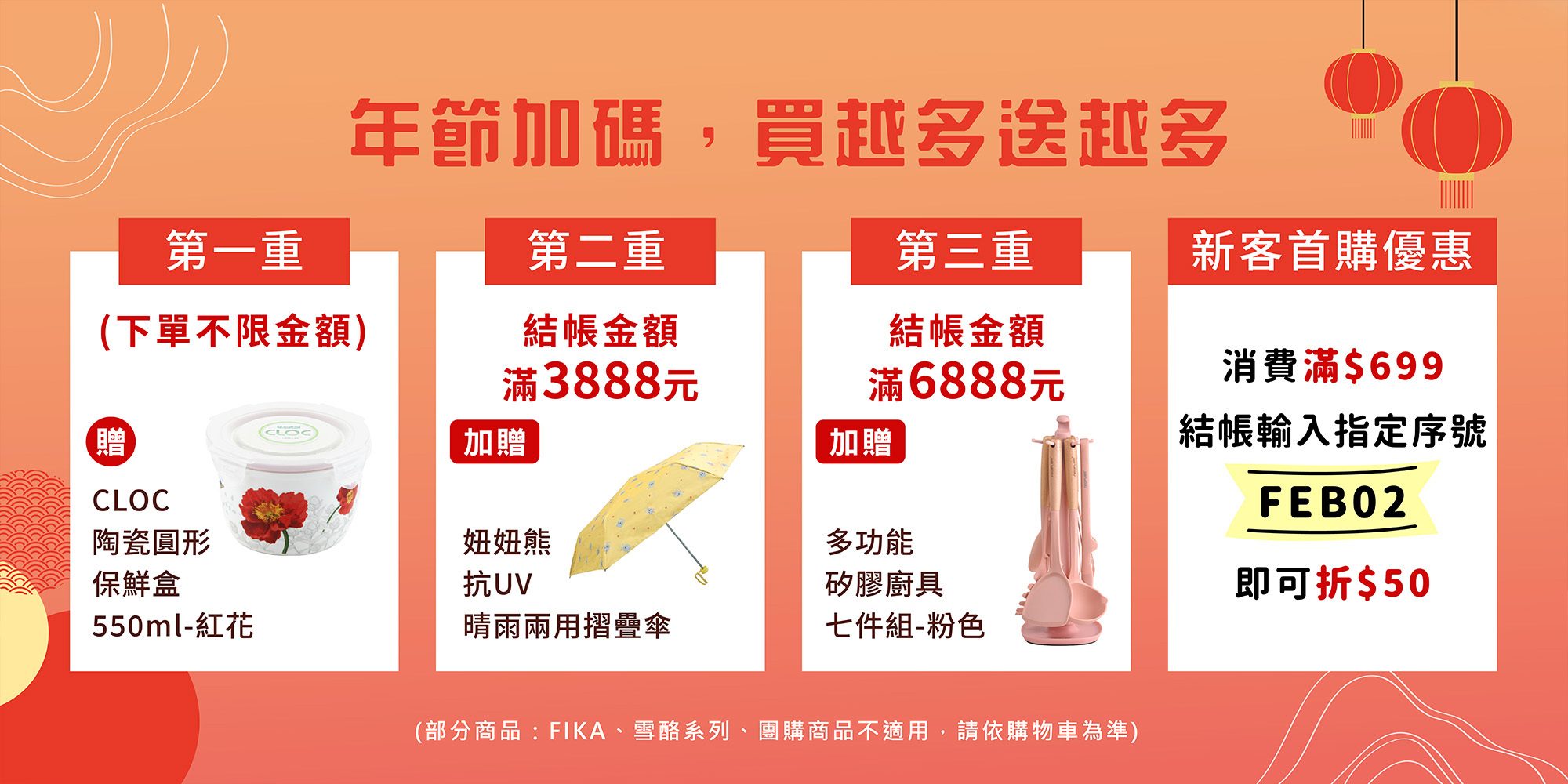 2. 部分活動商品不適用滿額贈活動,滿額贈品數量有限,贈完為止,請以購物車顯示之內容為準。