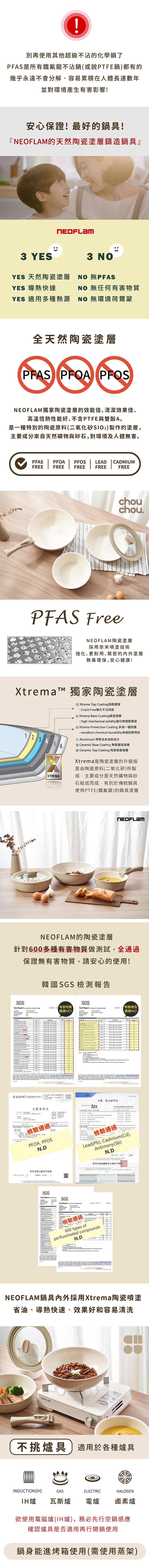 ●天然XTREMA陶瓷塗層,不含重金屬、無PFAS有害物質