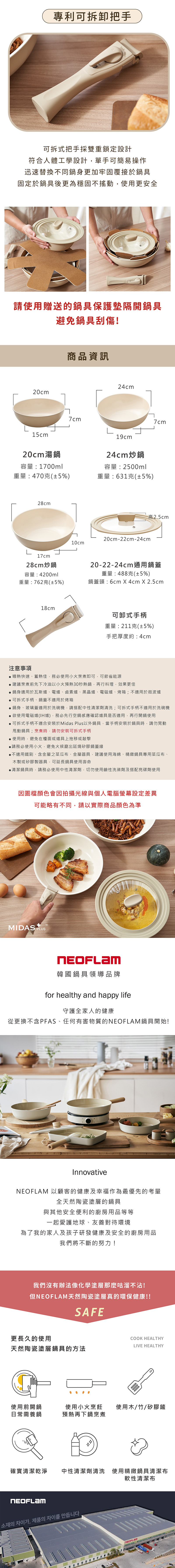20cm湯鍋/ 24cm炒鍋/ 28cm炒鍋/ 20-22-24矽膠鍋蓋 / 可拆式手柄
