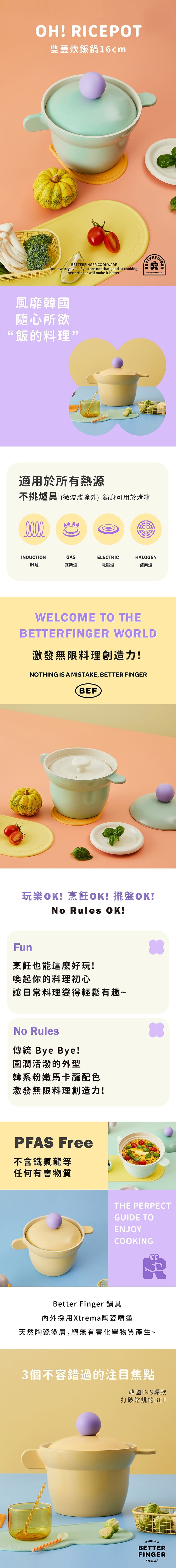 Better Finger雙蓋炊飯鍋16cm-黃色(全覆底)