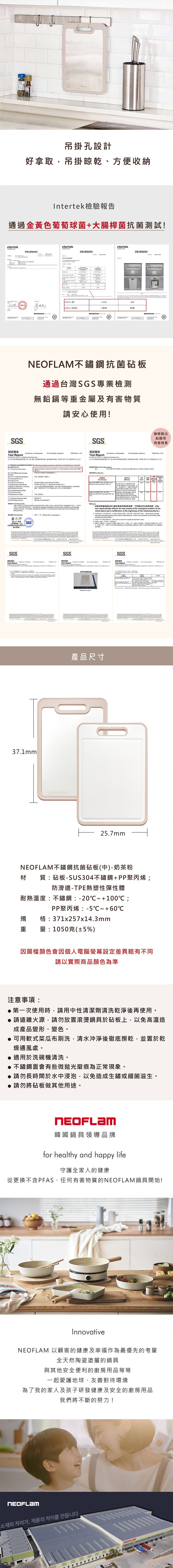品 名:NEOFLAM不鏽鋼抗菌砧板(中)-White silver / 奶茶粉