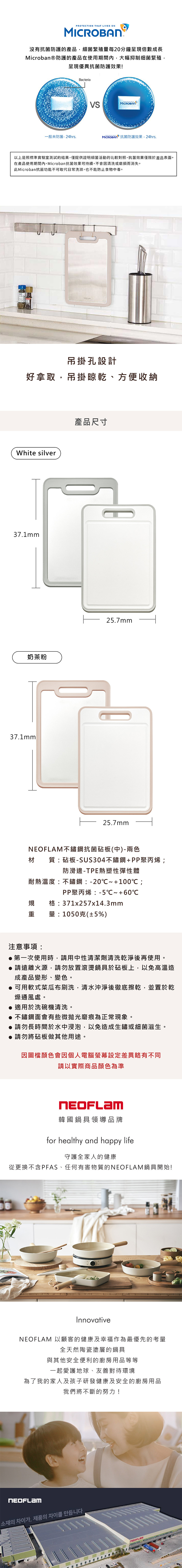 品  名:NEOFLAM不鏽鋼抗菌砧板(中)-White silver / 奶茶粉