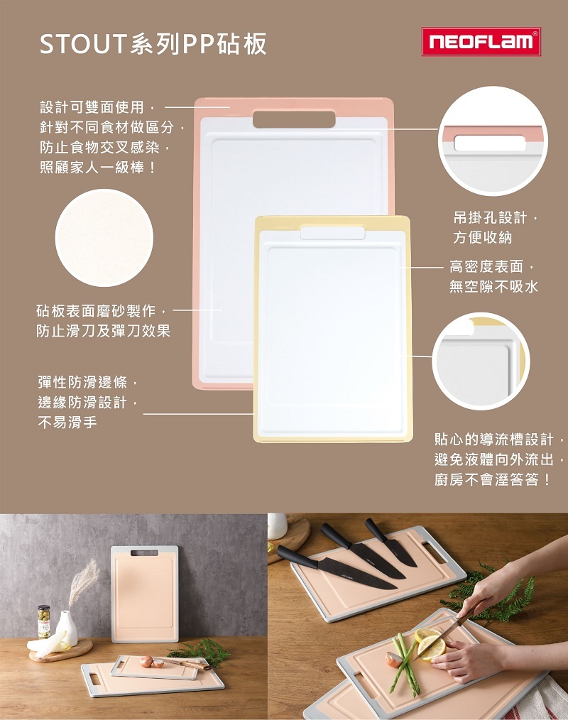 ● 設計可雙面使用,針對不同食材做區分,防止食物