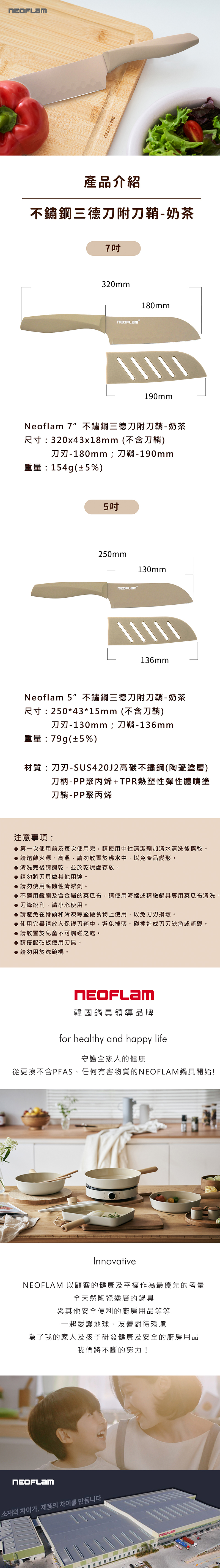 品 名:Neoflam 7”三德刀附刀鞘-奶茶