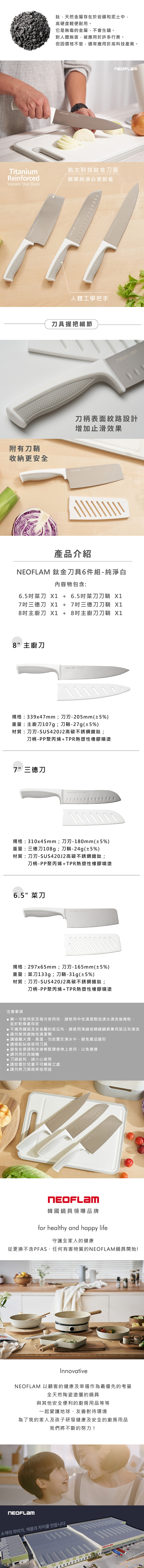 規 格:6.5吋菜刀-297x65mm;刀刃-165mm(±5%)