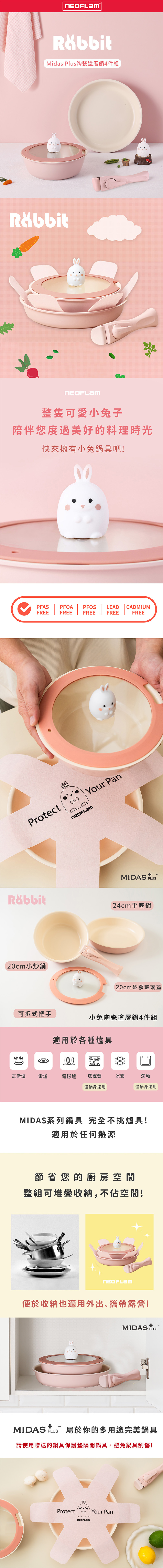 品 名:Midas Plus 陶瓷塗層鍋4件組-小兔