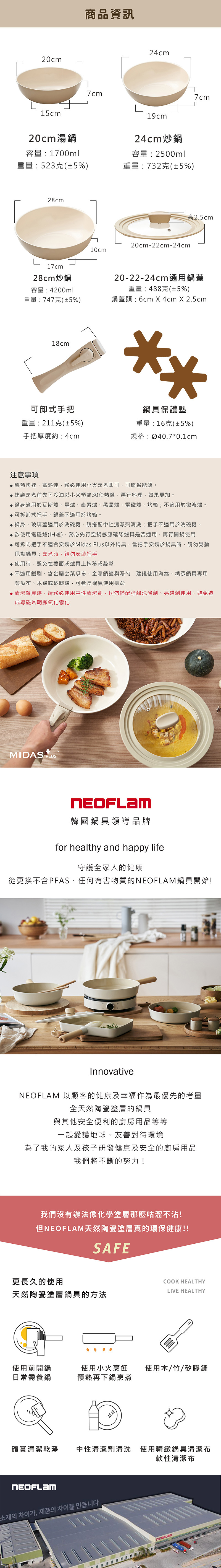 ●可拆式把手不適合安裝於Midas Plus以外鍋具,當把手安裝於鍋具時,請勿晃動甩動鍋具;烹煮時,請勿安裝把手