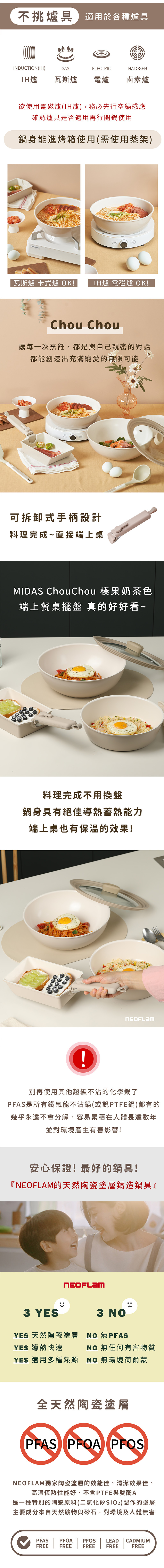 品 名:Midas Plus 陶瓷塗層鍋5件組-Chouchou(噴砂全覆底不挑爐具)