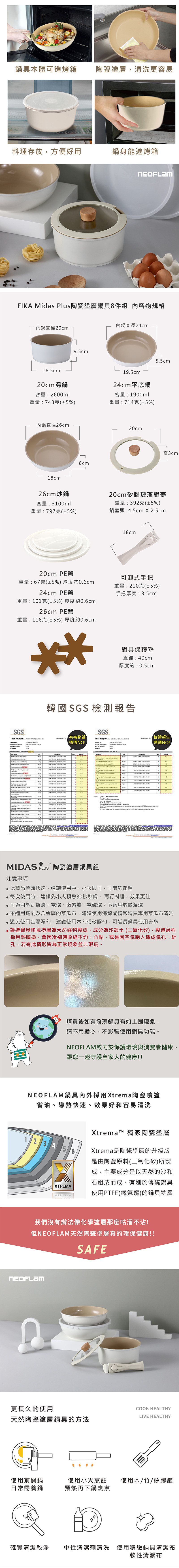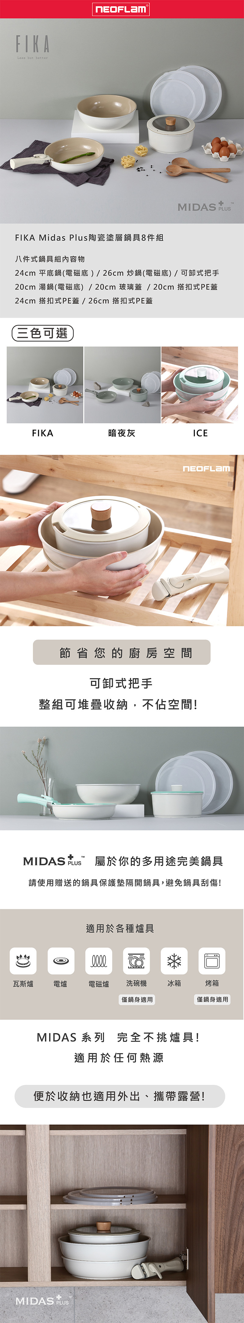 品 名:FIKA Midas Plus陶瓷塗層鍋8件組-(電磁底)
