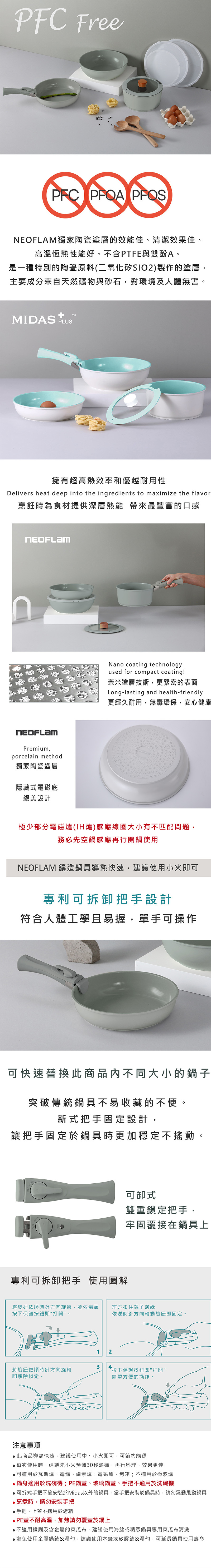 ● 可拆式手把不適安裝於Midas以外的鍋具,當手把安裝於鍋具時,請勿晃動甩動鍋具