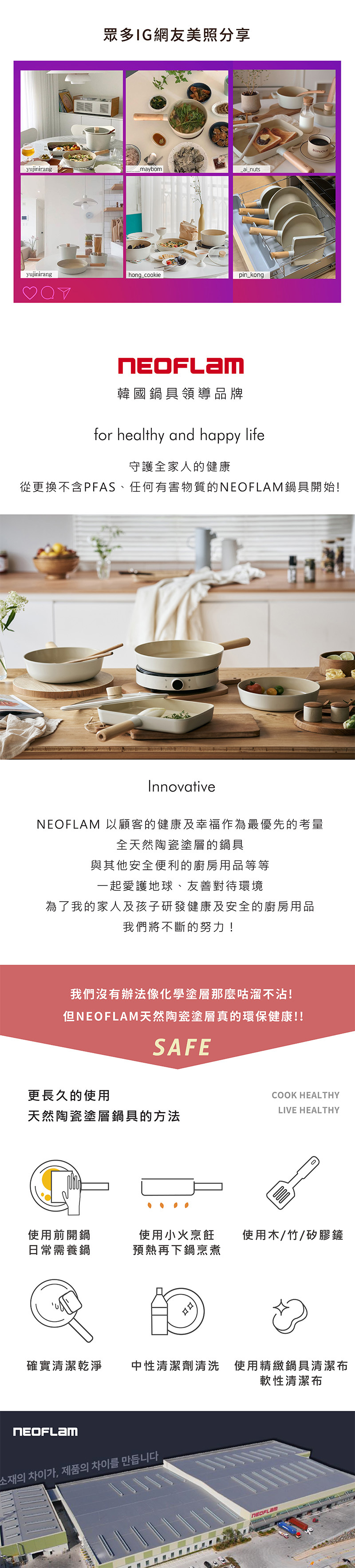 ● 大平面鍋底搭配微弧形鍋身,能料理大份量、大體積食材。炒飯、拌炒食材不外溢,降低油花噴濺。