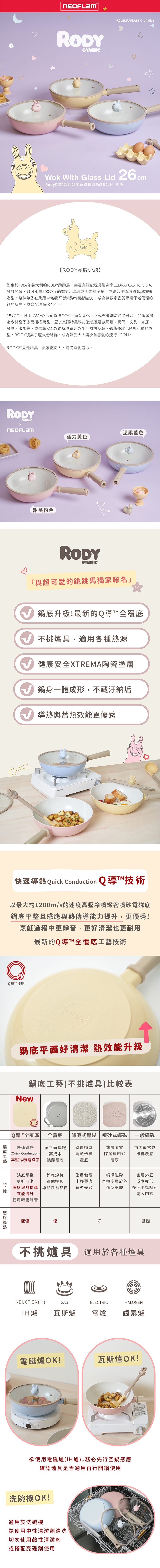 Rody跳跳馬系列陶瓷塗層炒鍋26公分+玻璃蓋(噴砂全覆底不挑爐具)-藍 /黃 /粉