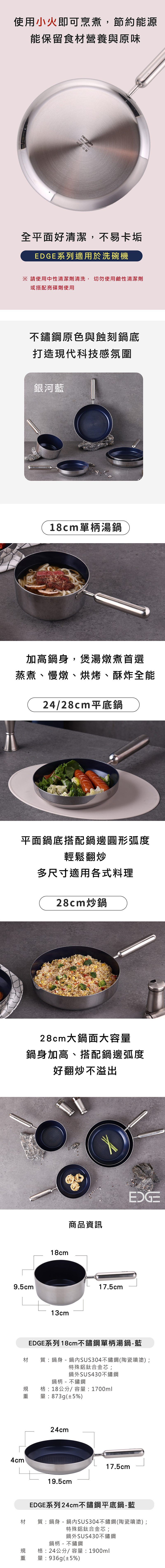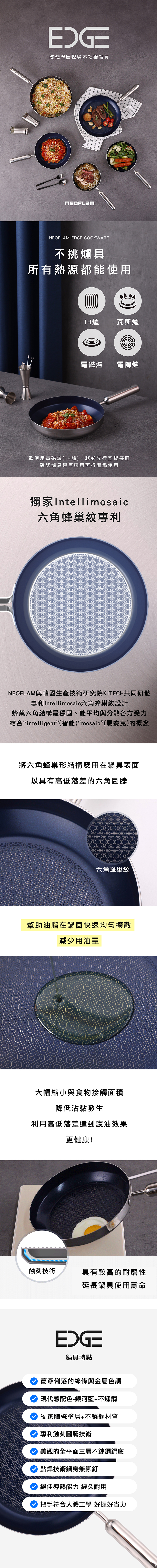 Edge系列陶瓷塗層蜂巢不鏽鋼鍋具 :