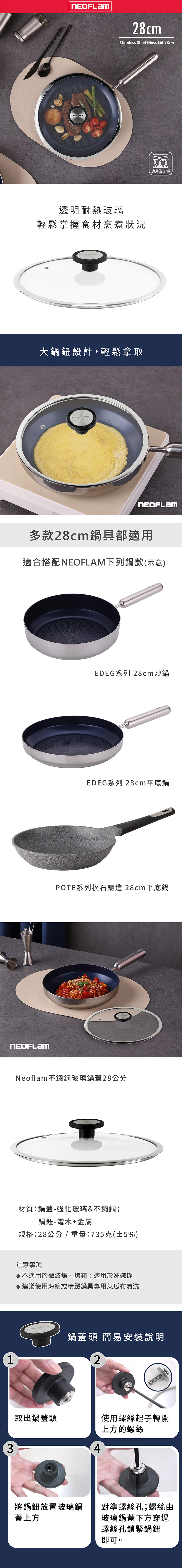 Neoflam不鏽鋼玻璃鍋蓋28公分