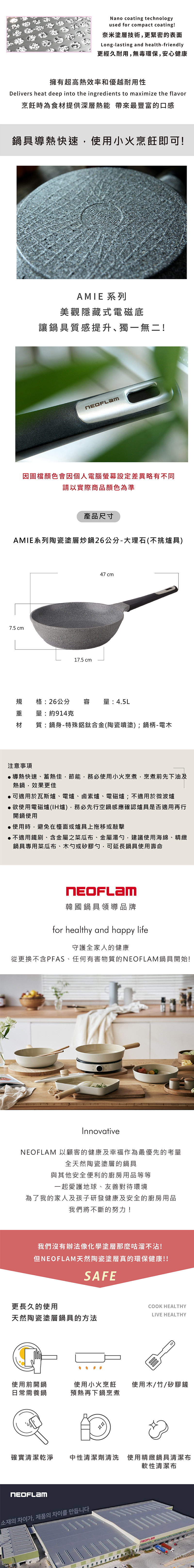 品名:AMIE系列陶瓷塗層鏢造炒鍋26公分-大理石(不挑爐具)