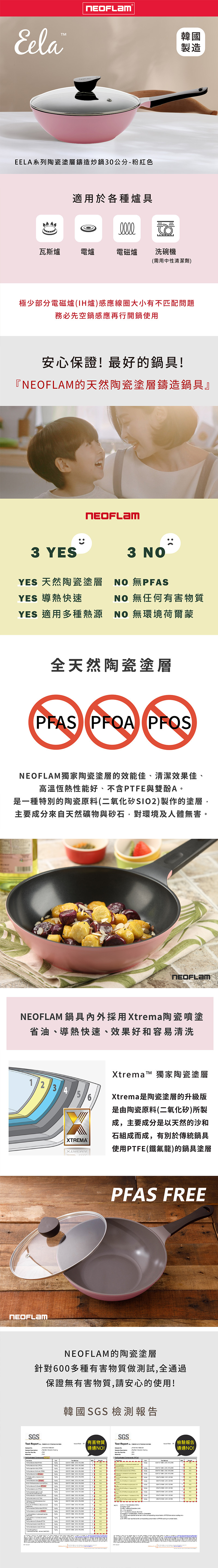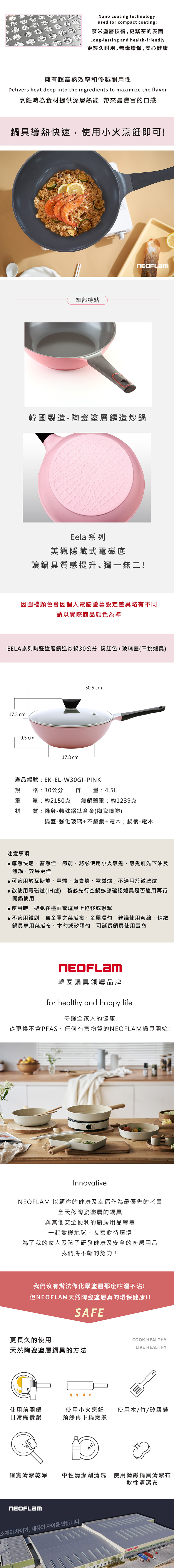 品 名:EELA系列陶瓷塗層鑄造炒鍋30公分-粉紅色+玻璃蓋(不挑爐具)