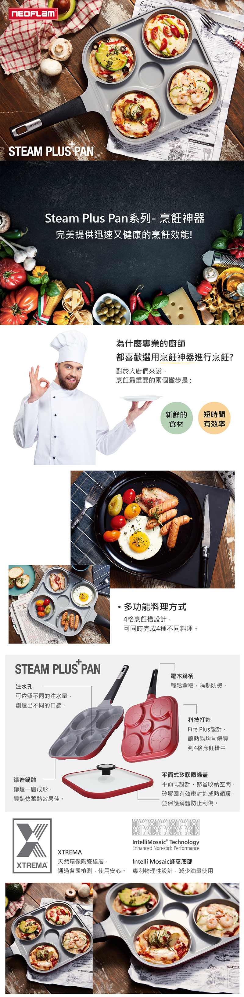 科技打造: Fire Plus設計,讓熱能均勻傳導到4格烹飪槽中。