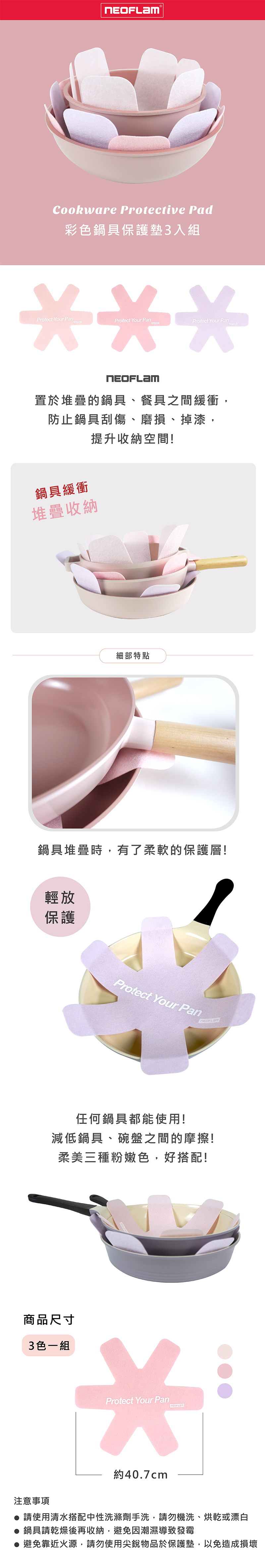● 置於堆疊的鍋具、餐具之間緩衝,防止鍋具刮傷、磨損、掉漆,提升收納空間