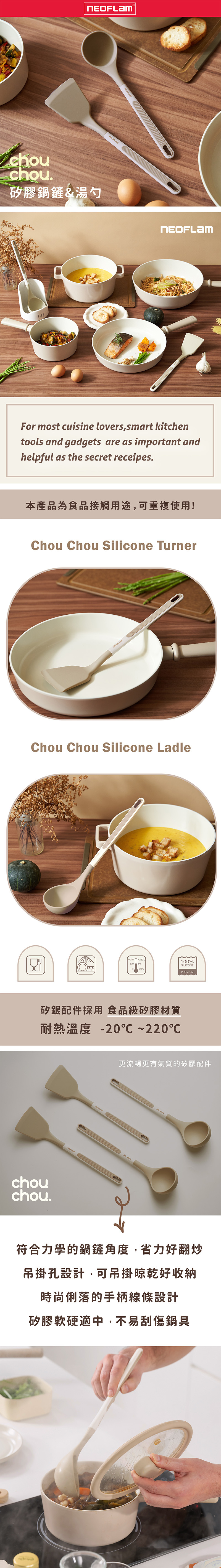 ● 矽膠軟硬適中,不易刮傷鍋具;手柄好握不滑手。