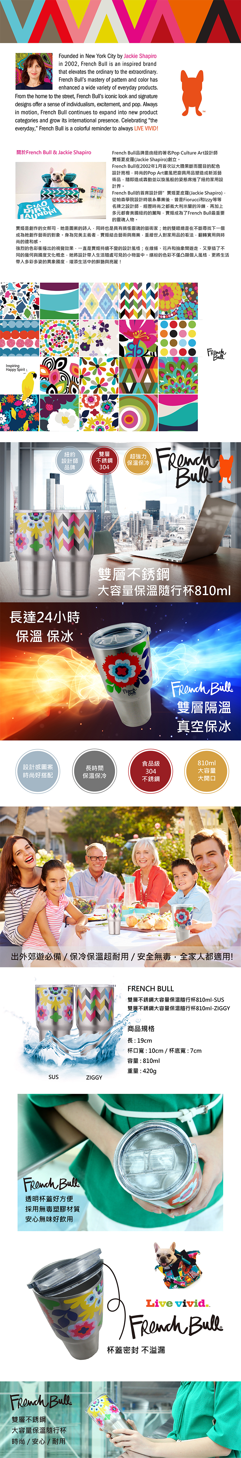時尚鮮豔配色French Bull 經典設計,外出使用成為眾人焦點,飲水也變成一種時尚態度。