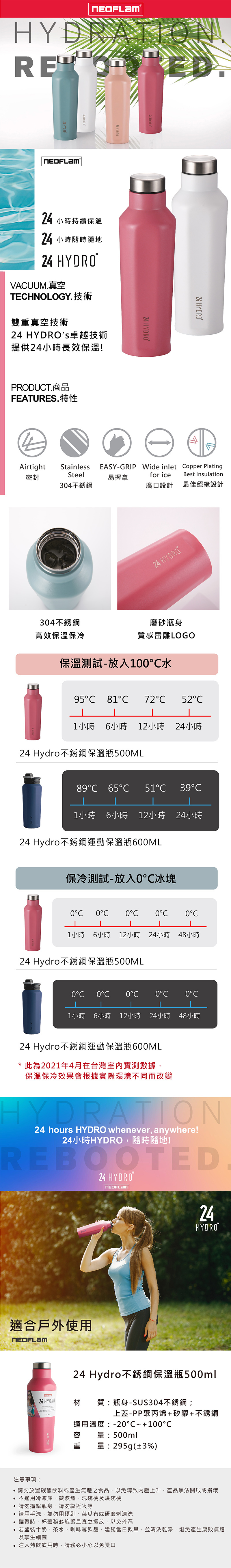品 名:Neoflam 24 Hydro不銹鋼保溫瓶500ml-亮粉