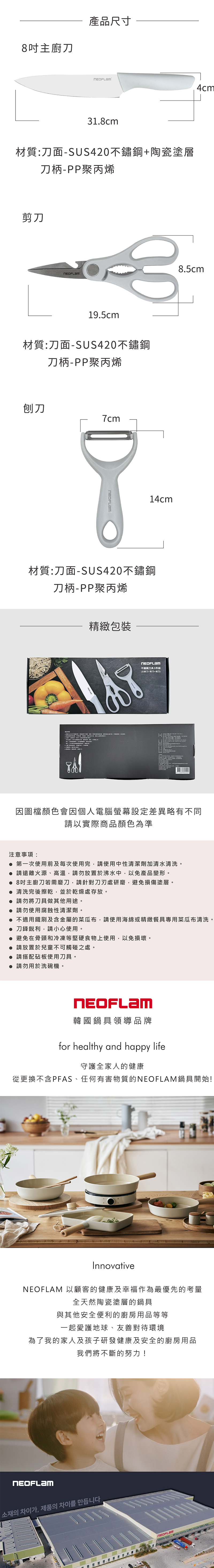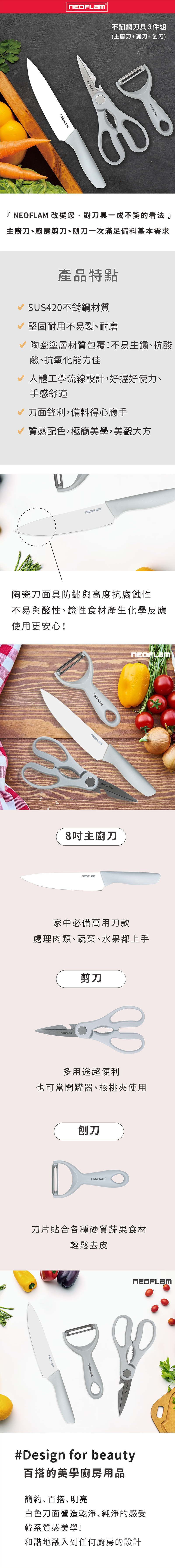 ● 主廚刀、廚房剪刀、刨刀一次滿足備料基本需求: