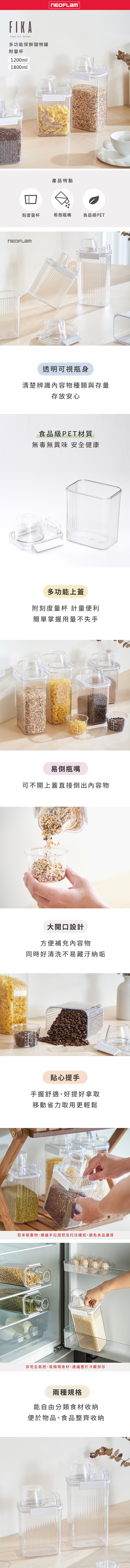 村花嫁台灣- FIKA系列多功能保鮮儲物罐附量杯1800ml/1200ml(兩款可選)