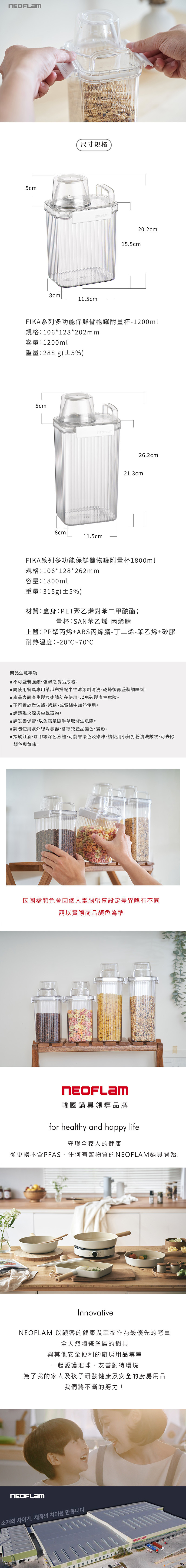 FIKA系列多功能保鮮儲物罐附量杯-1200ml