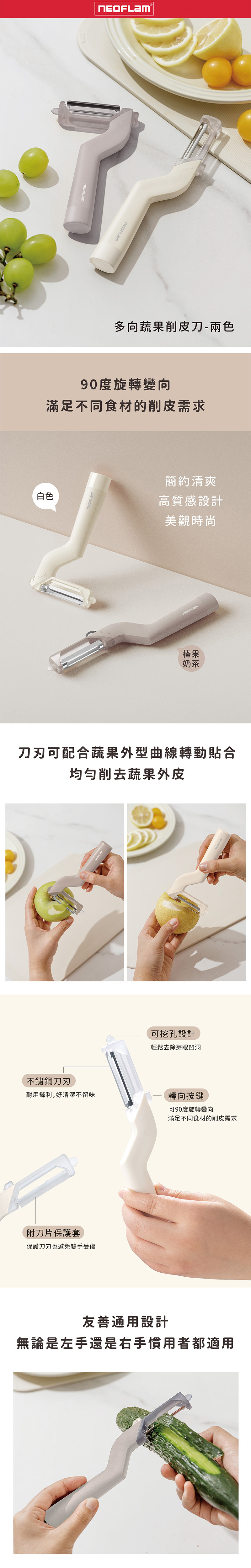 ●90度旋轉變向,滿足不同食材的削皮需求