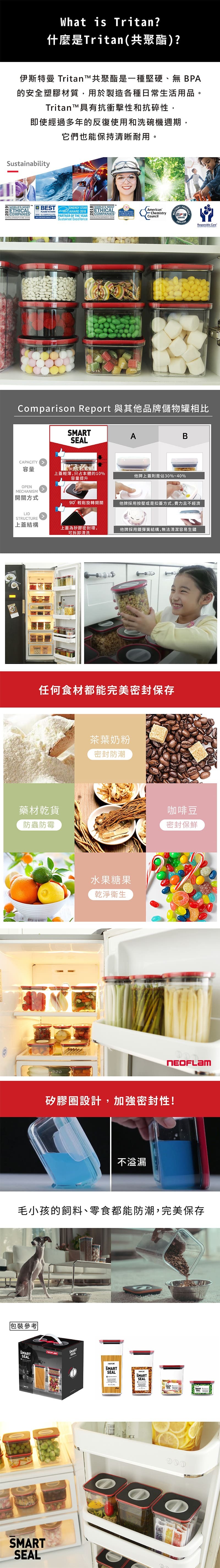材質:盒身-TRITAN共聚酯;盒蓋-PP聚丙烯+ABS塑膠+矽膠圈