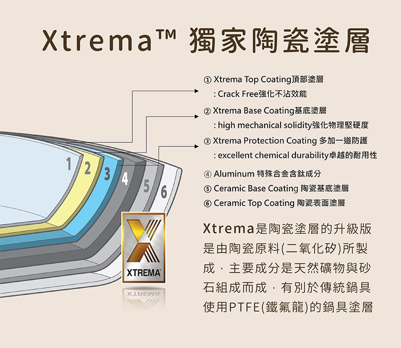 ●天然XTREMA陶瓷塗層,不含重金屬、無PFAS有害物質