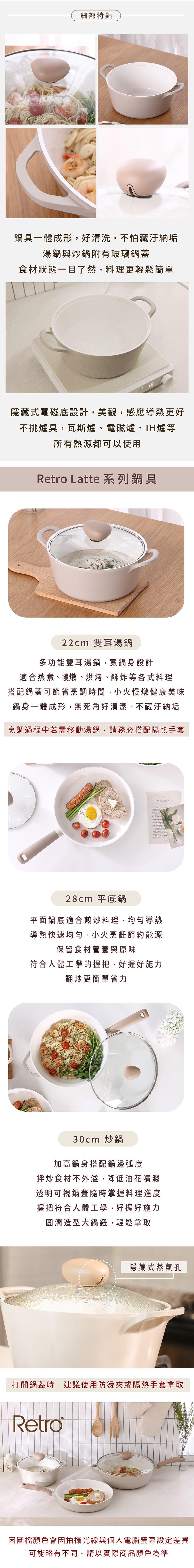 品 名:Retro系列鑄造炒鍋30CM(電磁底)+玻璃蓋-咖啡歐蕾