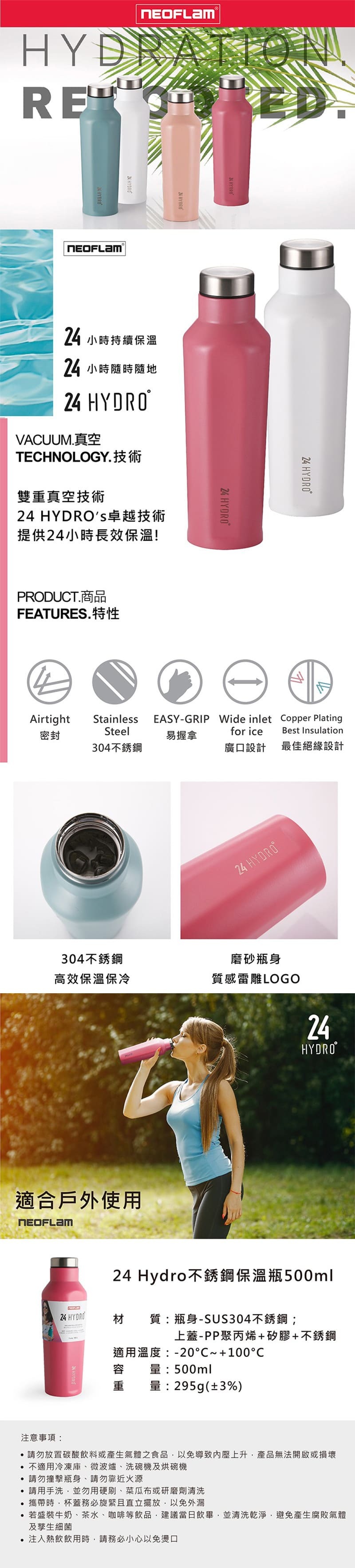 Neoflam 24 Hydro不銹鋼保溫瓶500ml - 亮粉
