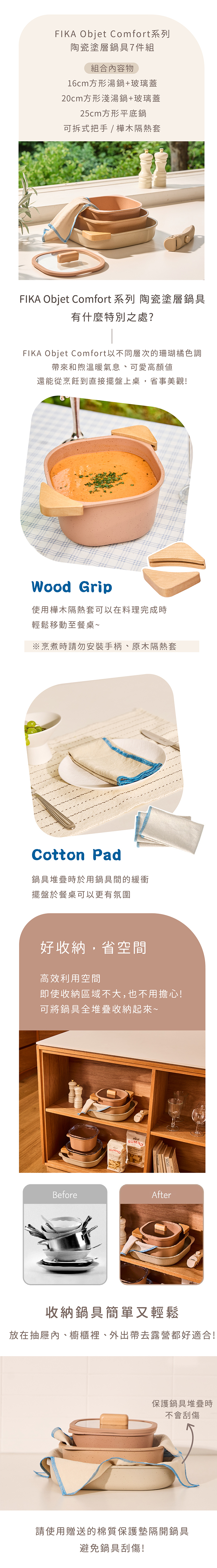 ●可拆式手柄、原木隔熱套、上蓋不適用於烤箱