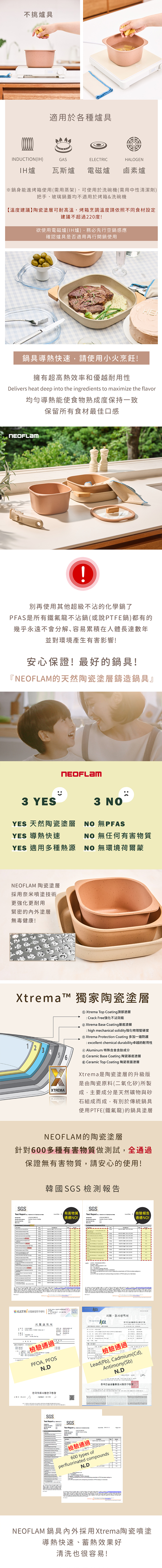 ●可適用於瓦斯爐、電爐、鹵素爐、電磁爐、烤箱;不適用於微波爐