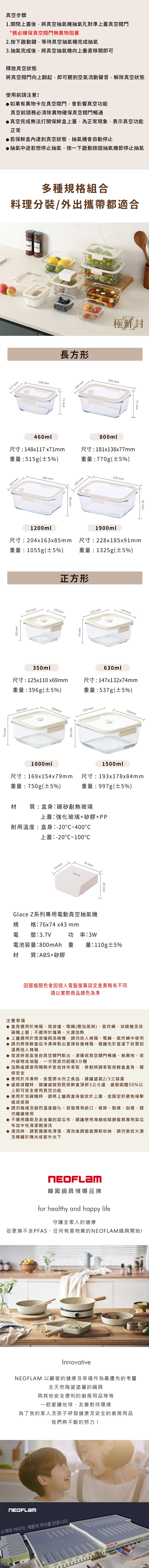 品 名:Glace Z系列真空耐熱玻璃保鮮盒-正方形-1000ml